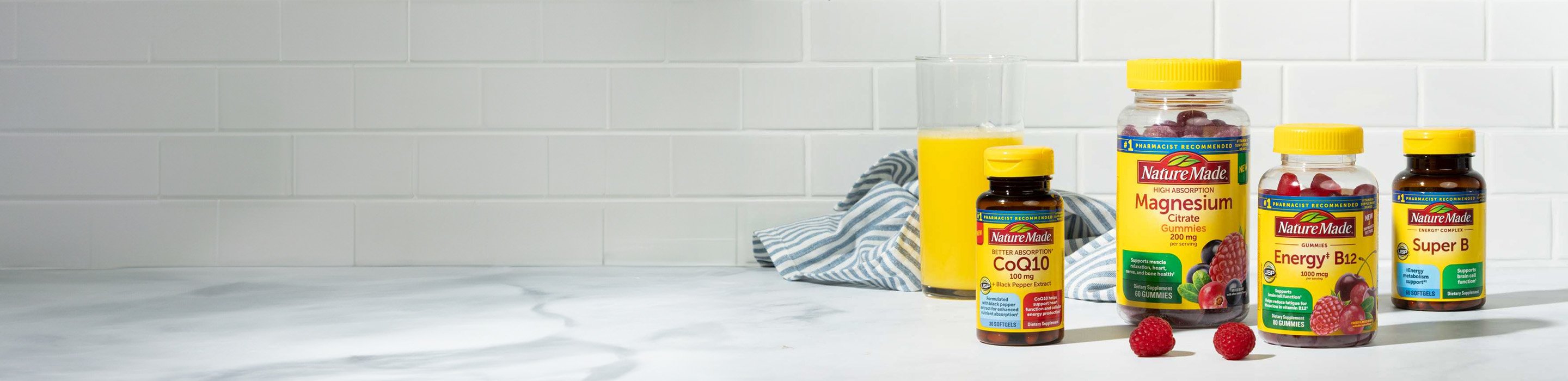 To help support cellular energy production in your body, consider implementing with B vitamins, magnesium and coenzyme Q10 (CoQ10) supplements into your routine. And don't forget to keep up with your healthy diet and exercise. At Nature Made, we offer a number of Energy tablets, softgels, and gummies to support your body from the inside out.†
